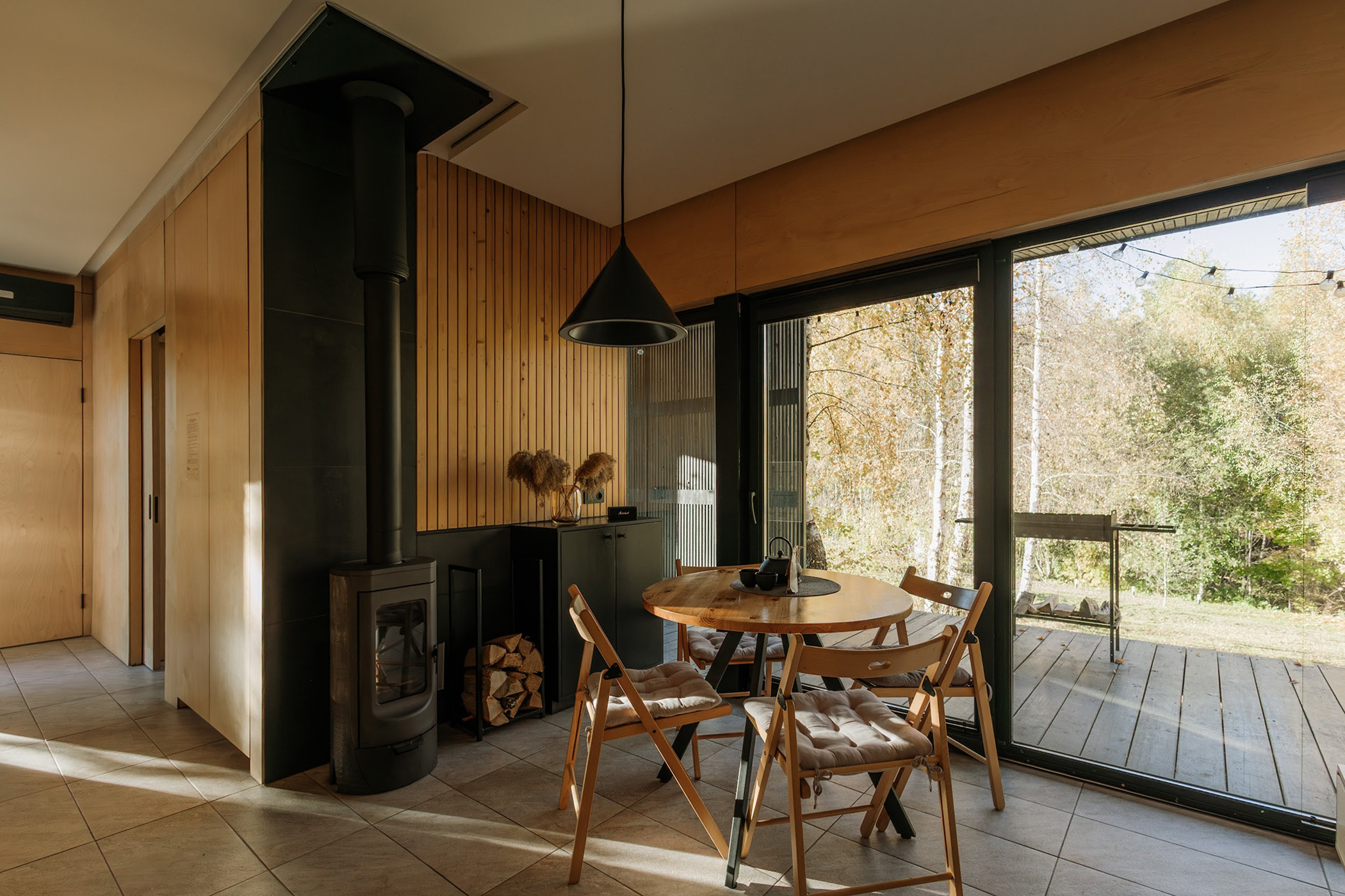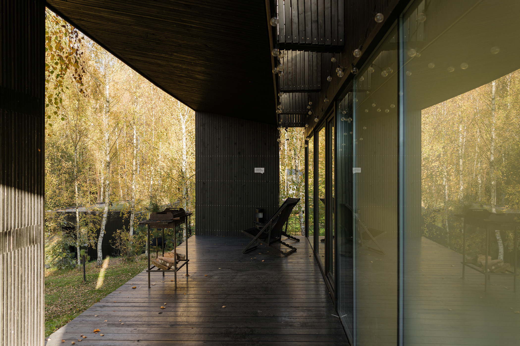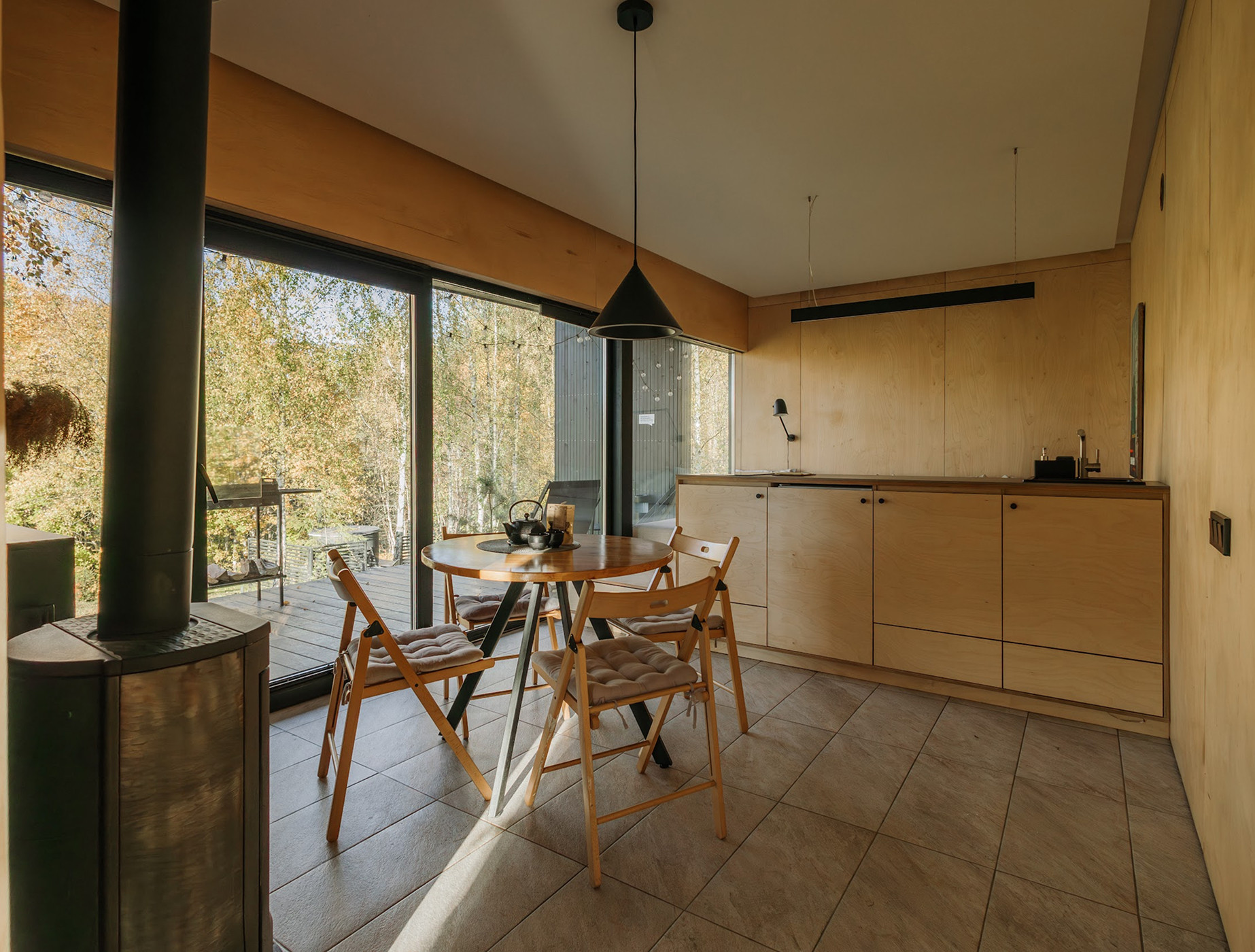 Двухкомнатный домик на четверых с панорамным остеклением и кострищем на террасе