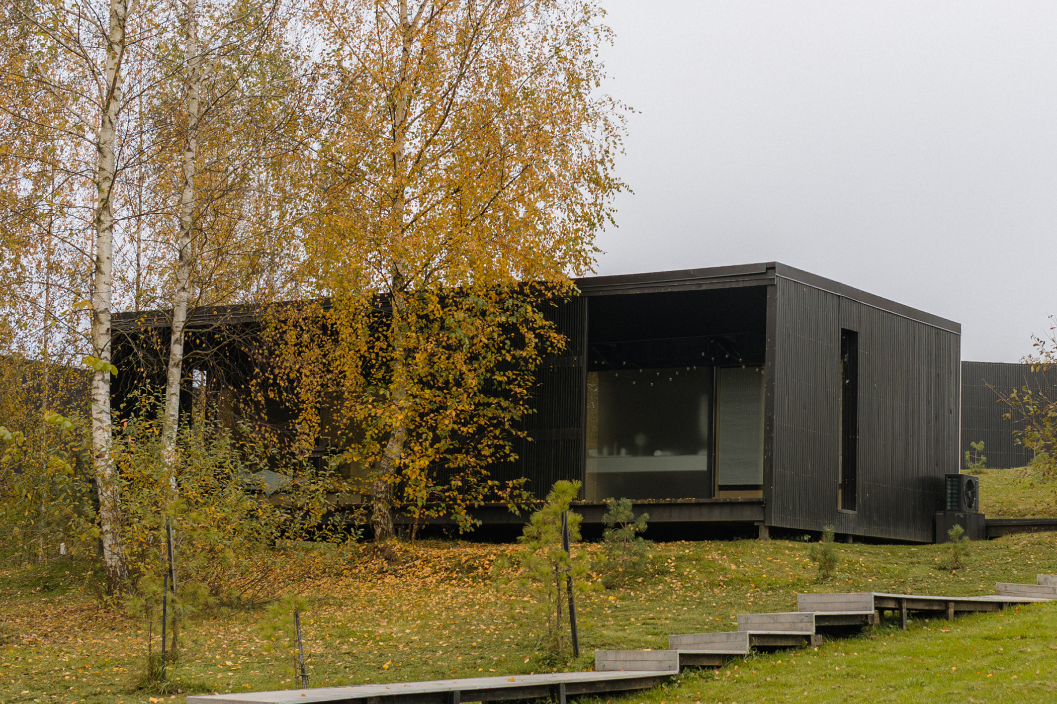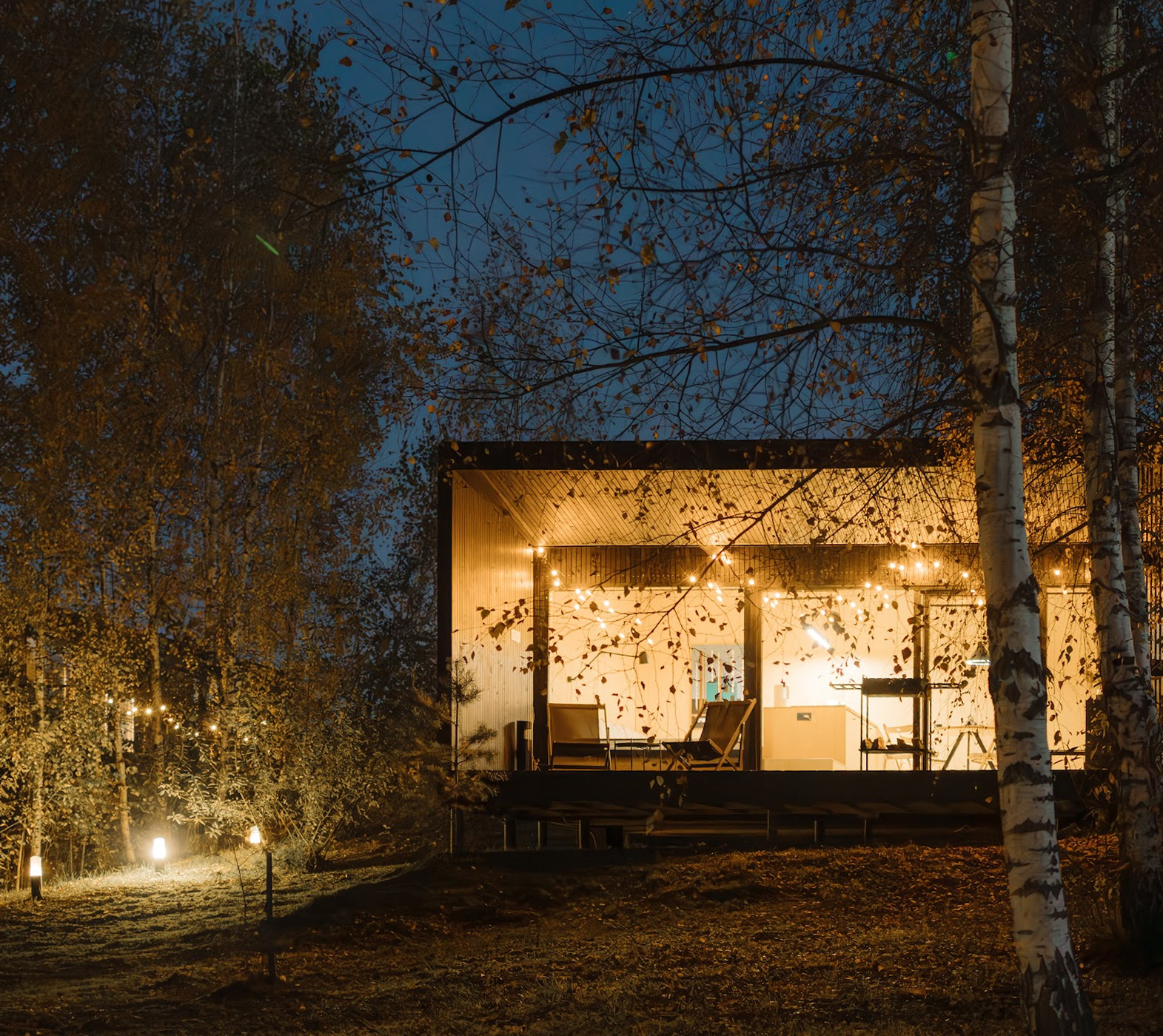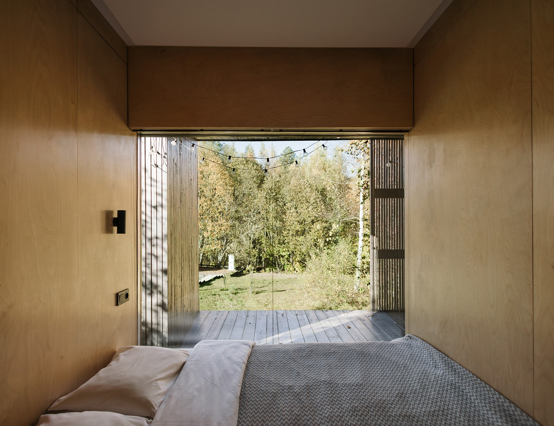 Двухкомнатный домик на четверых с панорамным остеклением и кострищем на террасе