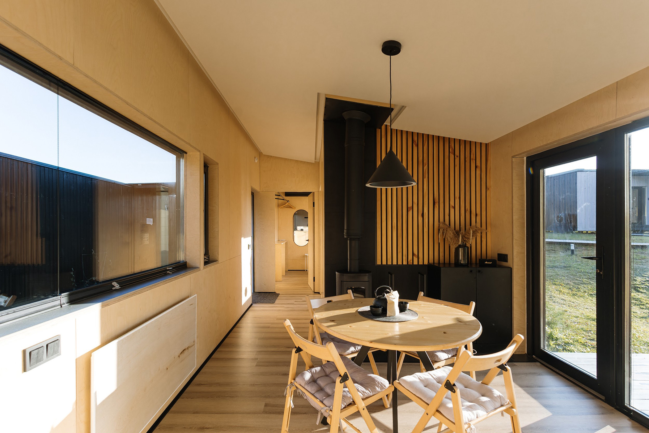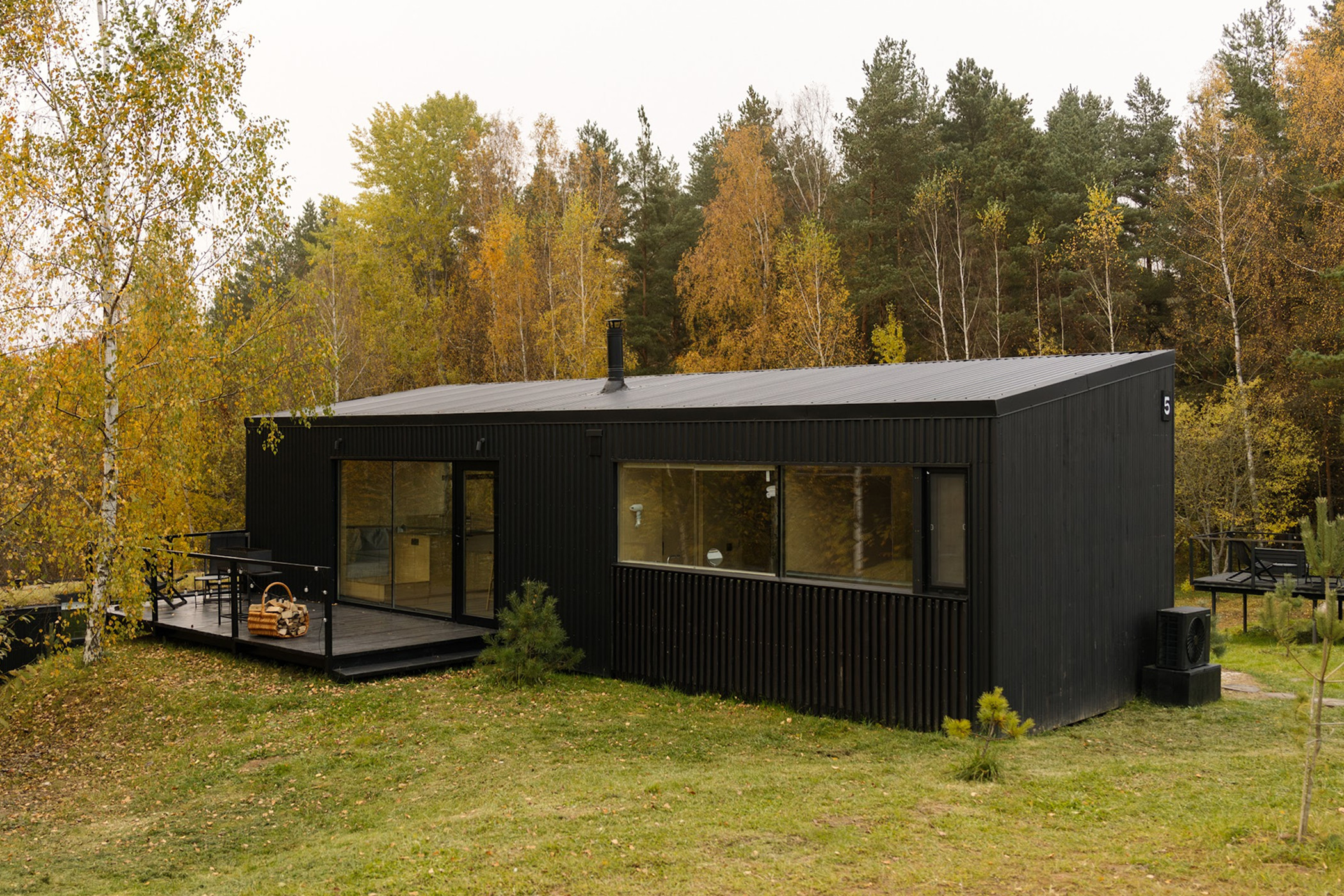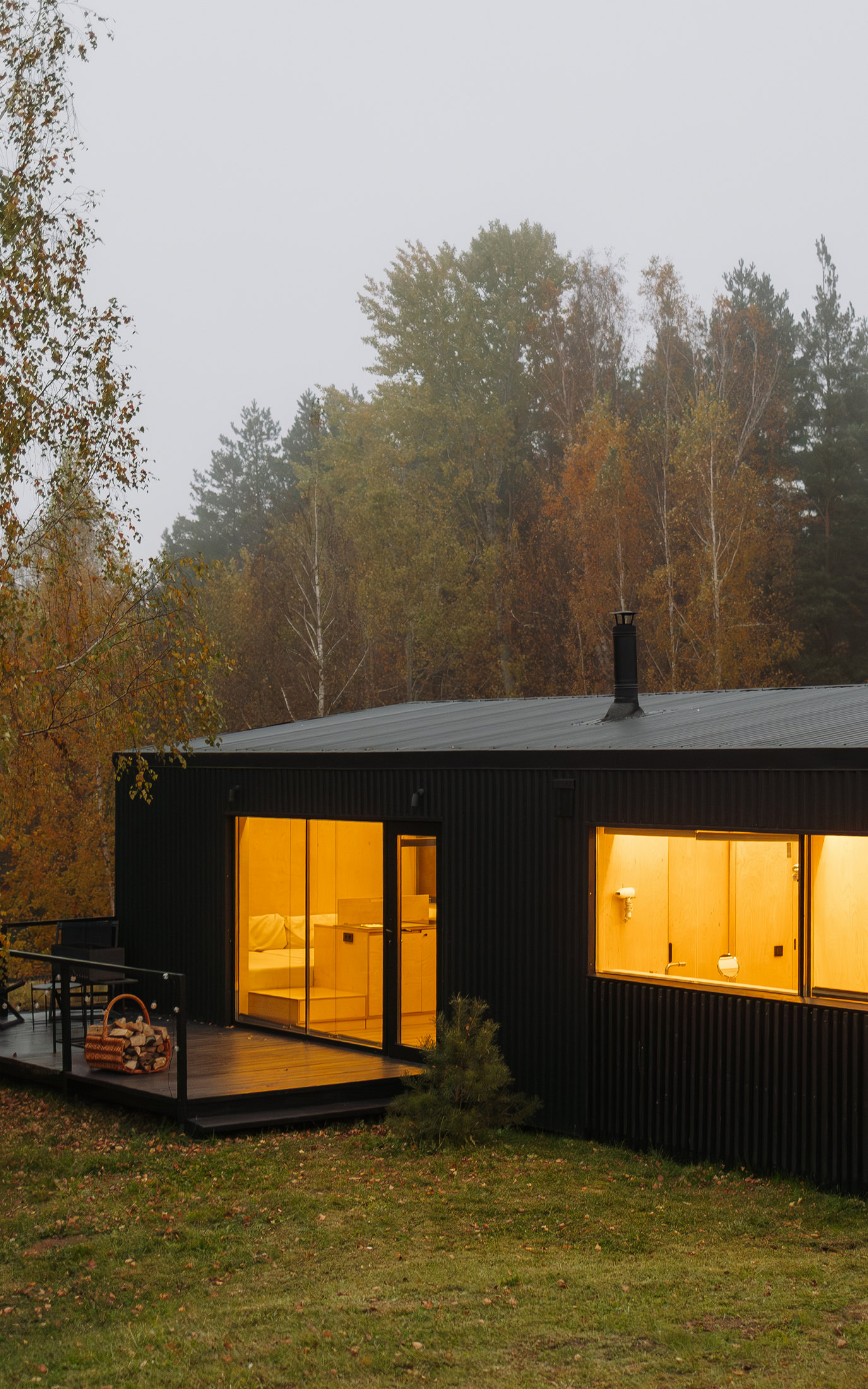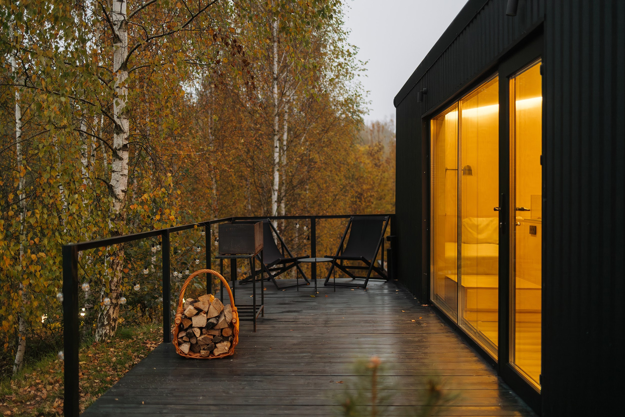 Двухкомнатный домик на четверых с проектором внутри и кострищем на террасе