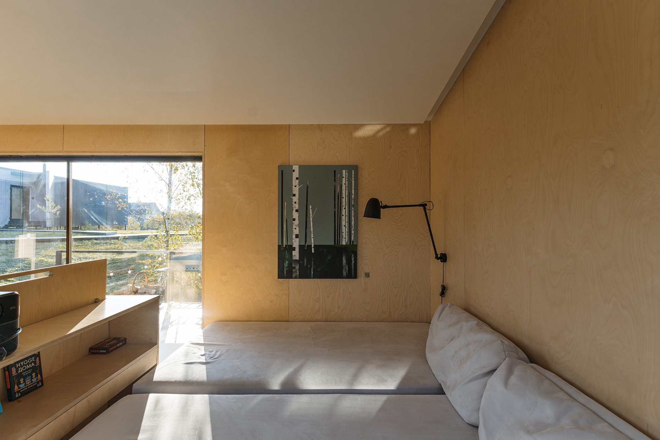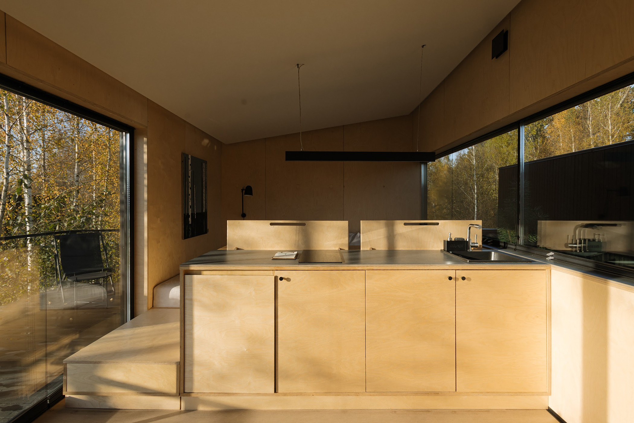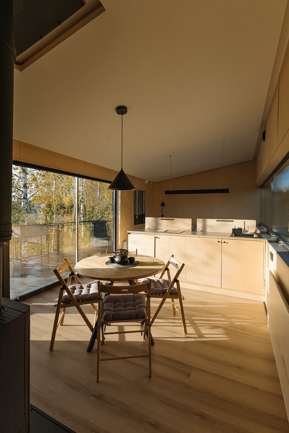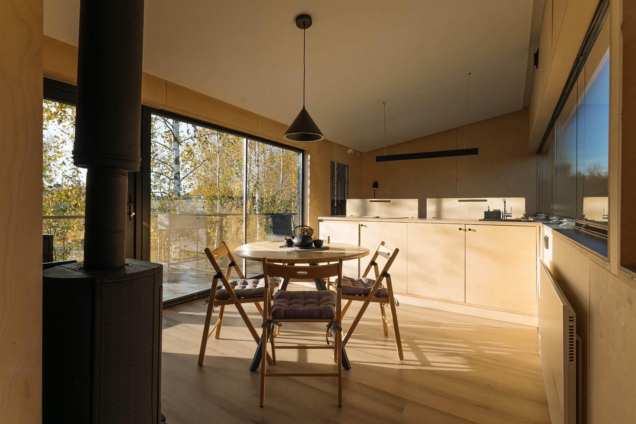 Включает в себя зону отдыха, отдельную спальню с двуспальной кроватью, гостиную совмещенную с кухней с большим диваном-лежанкой, обеденным местом, санузел, душевую и террасу открытого типа для барбекю. Без сауны