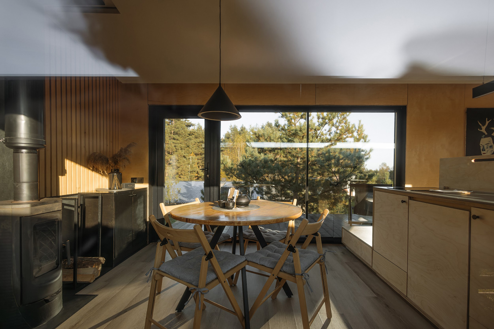 Двухкомнатный домик на четверых с проектором внутри и кострищем на террасе