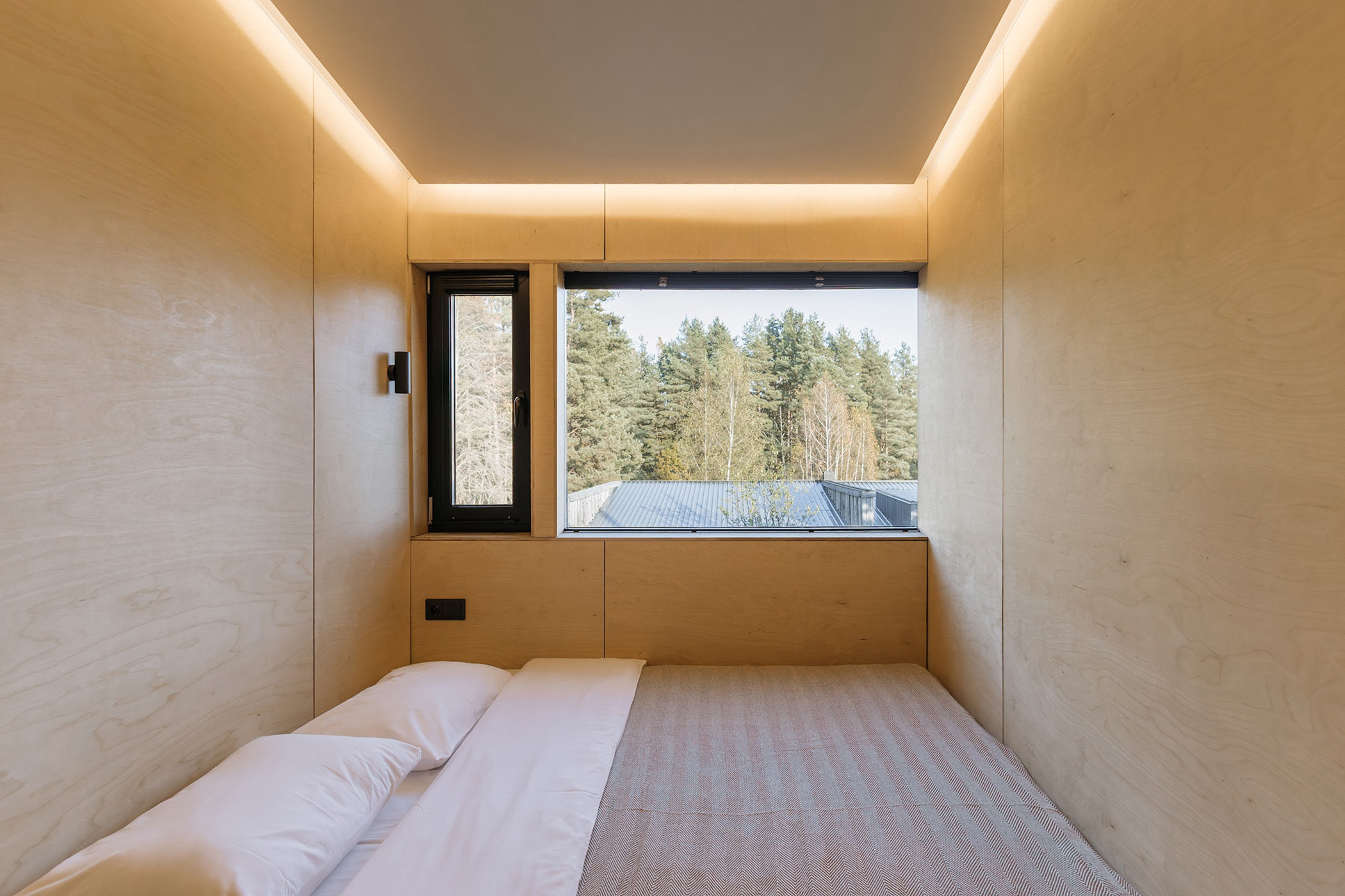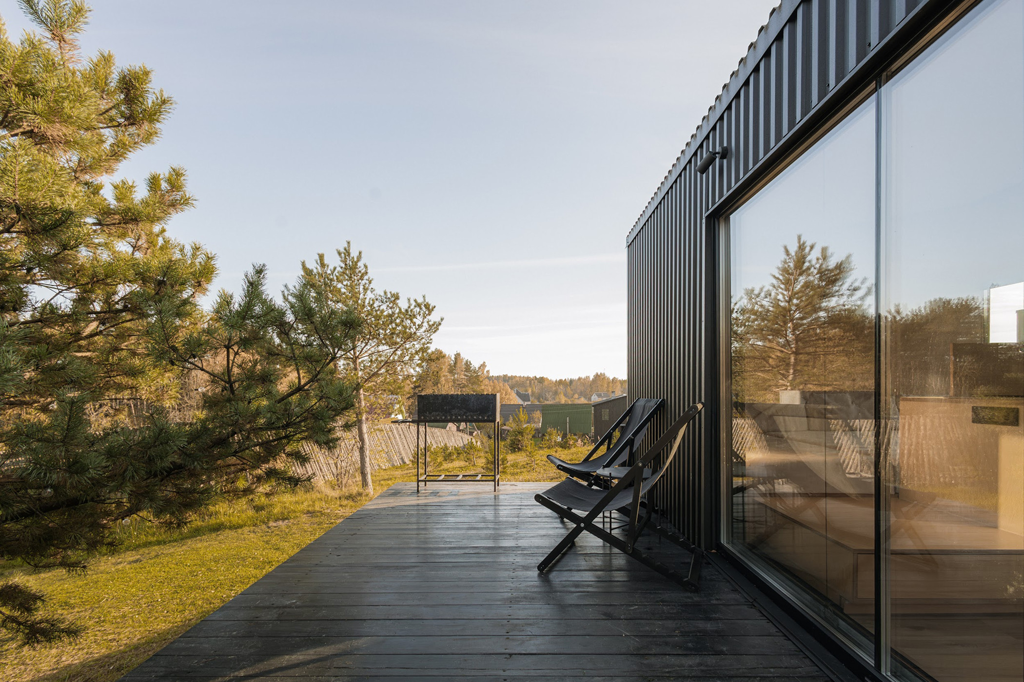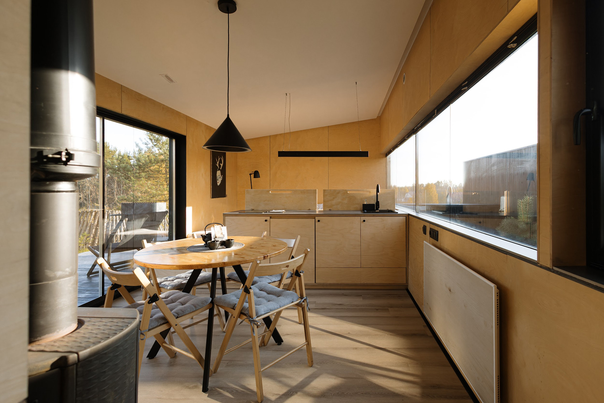Включает в себя зону отдыха, отдельную спальню с двуспальной кроватью, гостиную совмещенную с кухней с большим диваном-лежанкой, обеденным местом, санузел, душевую и террасу открытого типа для барбекю. Без сауны