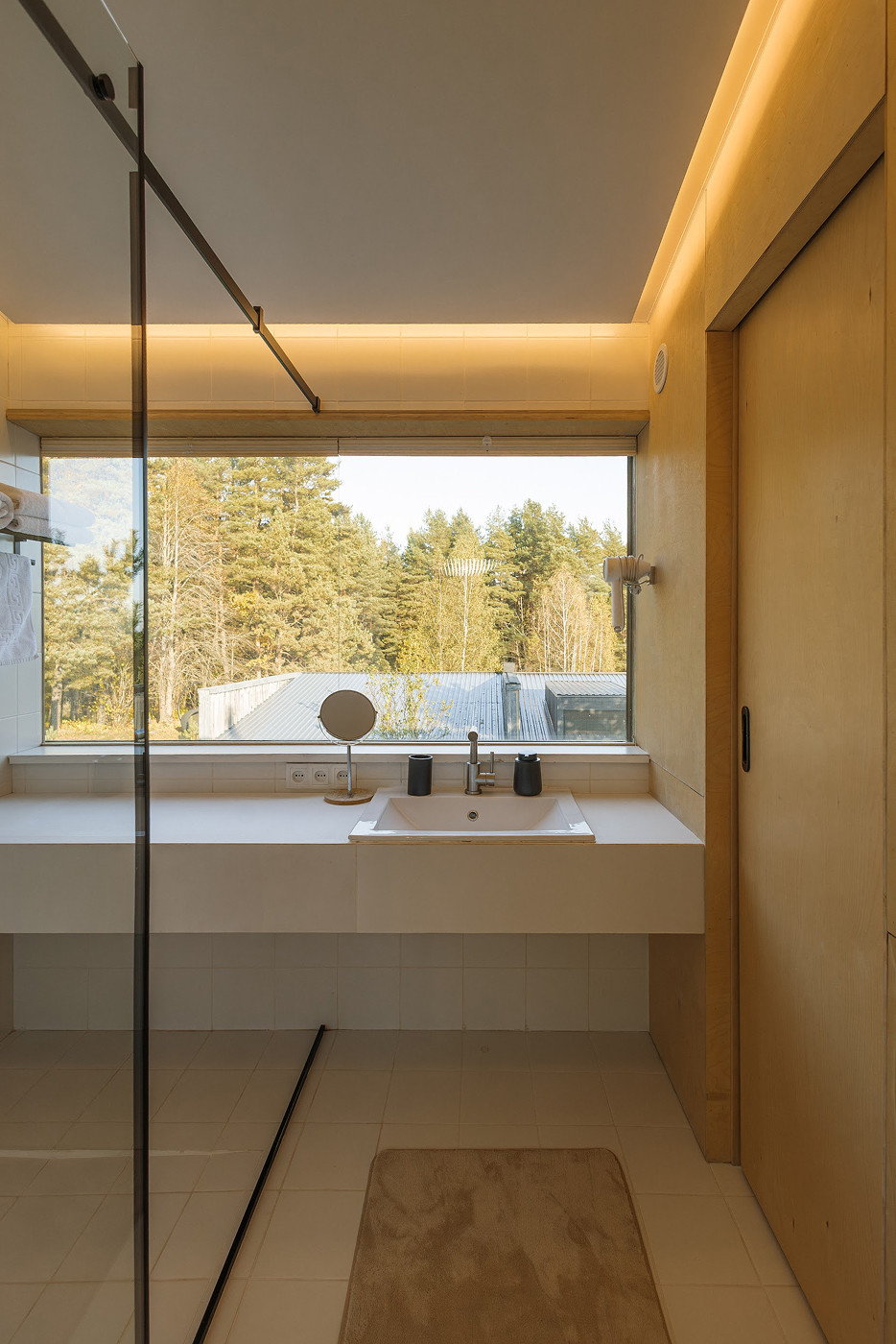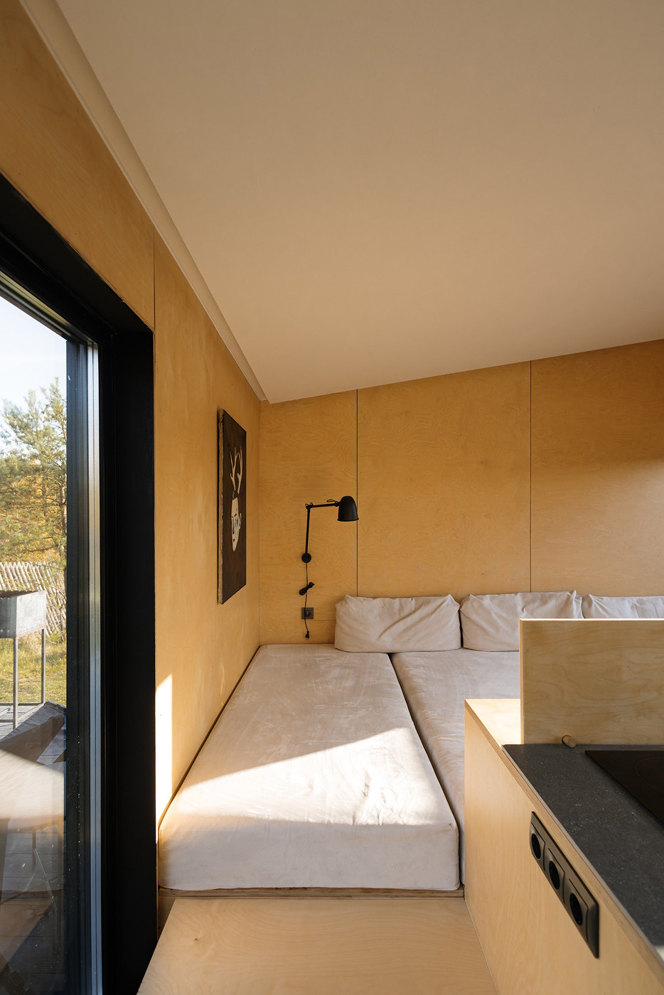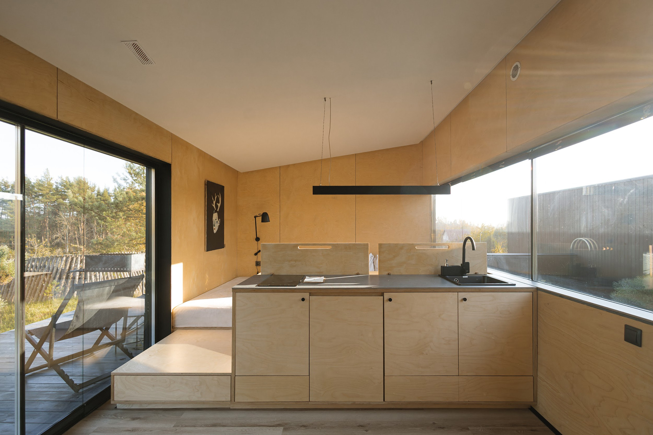 Включает в себя зону отдыха, отдельную спальню с двуспальной кроватью, гостиную совмещенную с кухней с большим диваном-лежанкой, обеденным местом, санузел, душевую и террасу открытого типа для барбекю. Без сауны